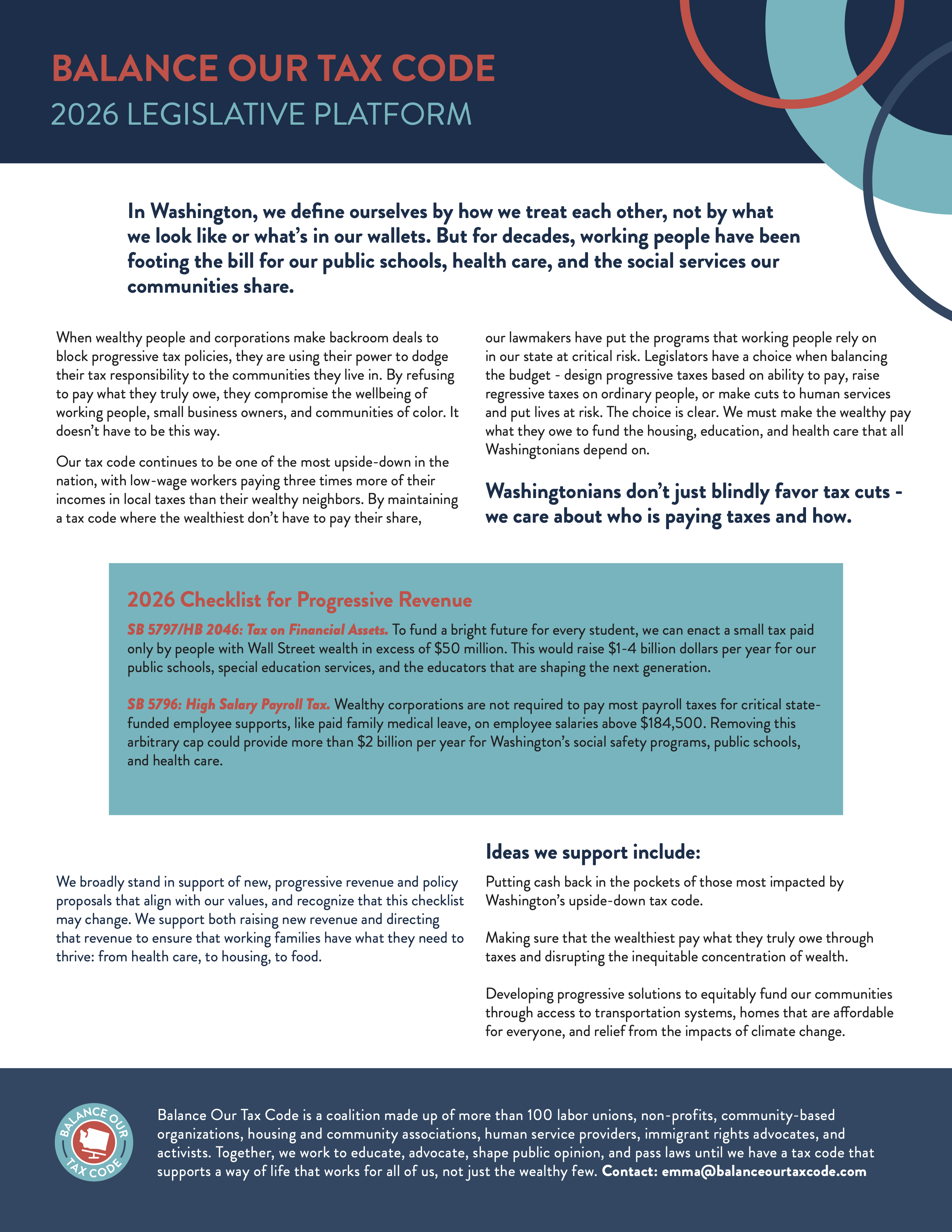 Resources 2026 Legislative Platform 2026 Wealth Tax Onepager 2026 High Salary Payroll Tax Onepager Messaging Guide